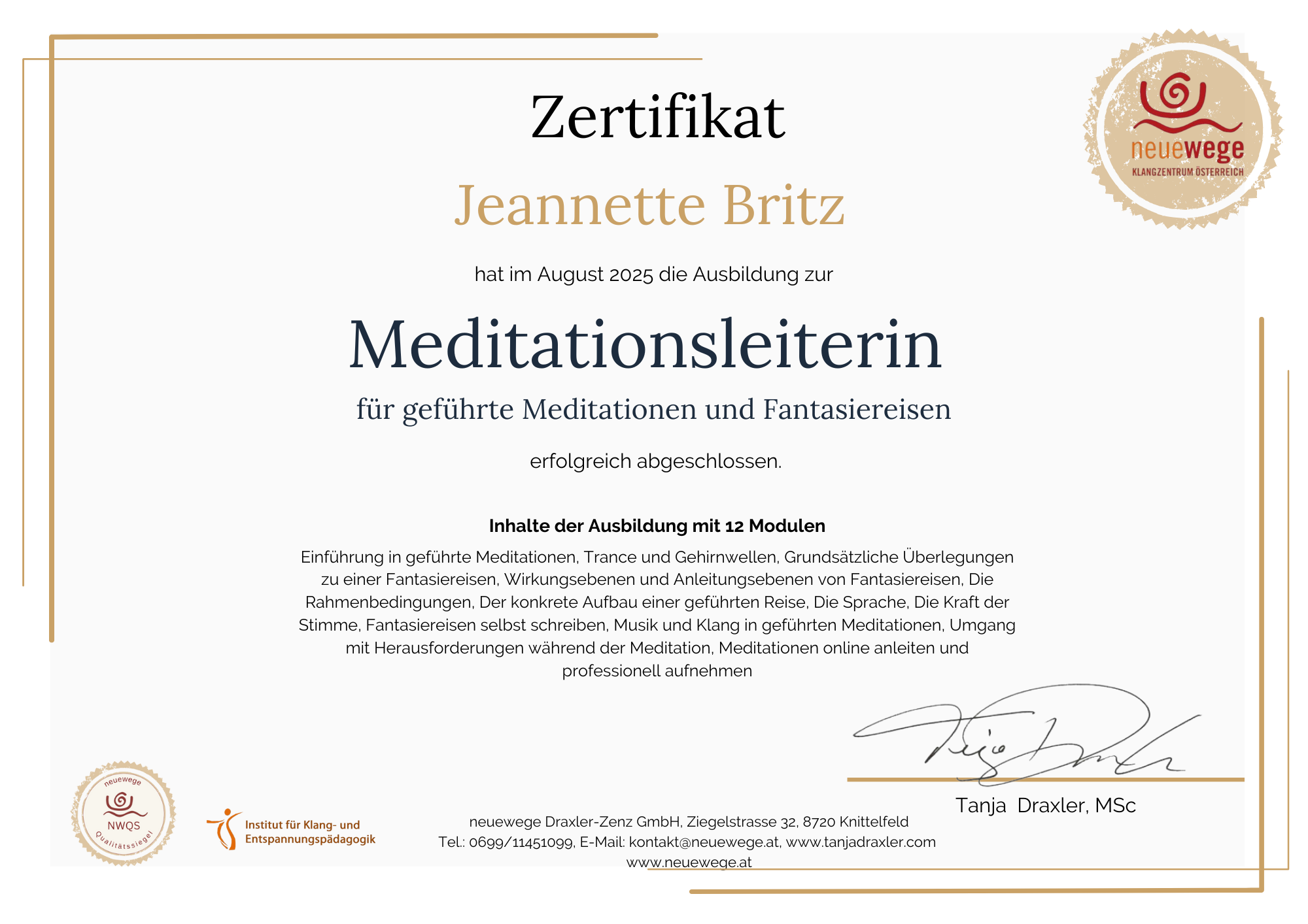 Ich bin Jeannette Britz, dipl. integrative Klangpädagogin und Klangmassagen-Praktikerin nach Angela Preker.